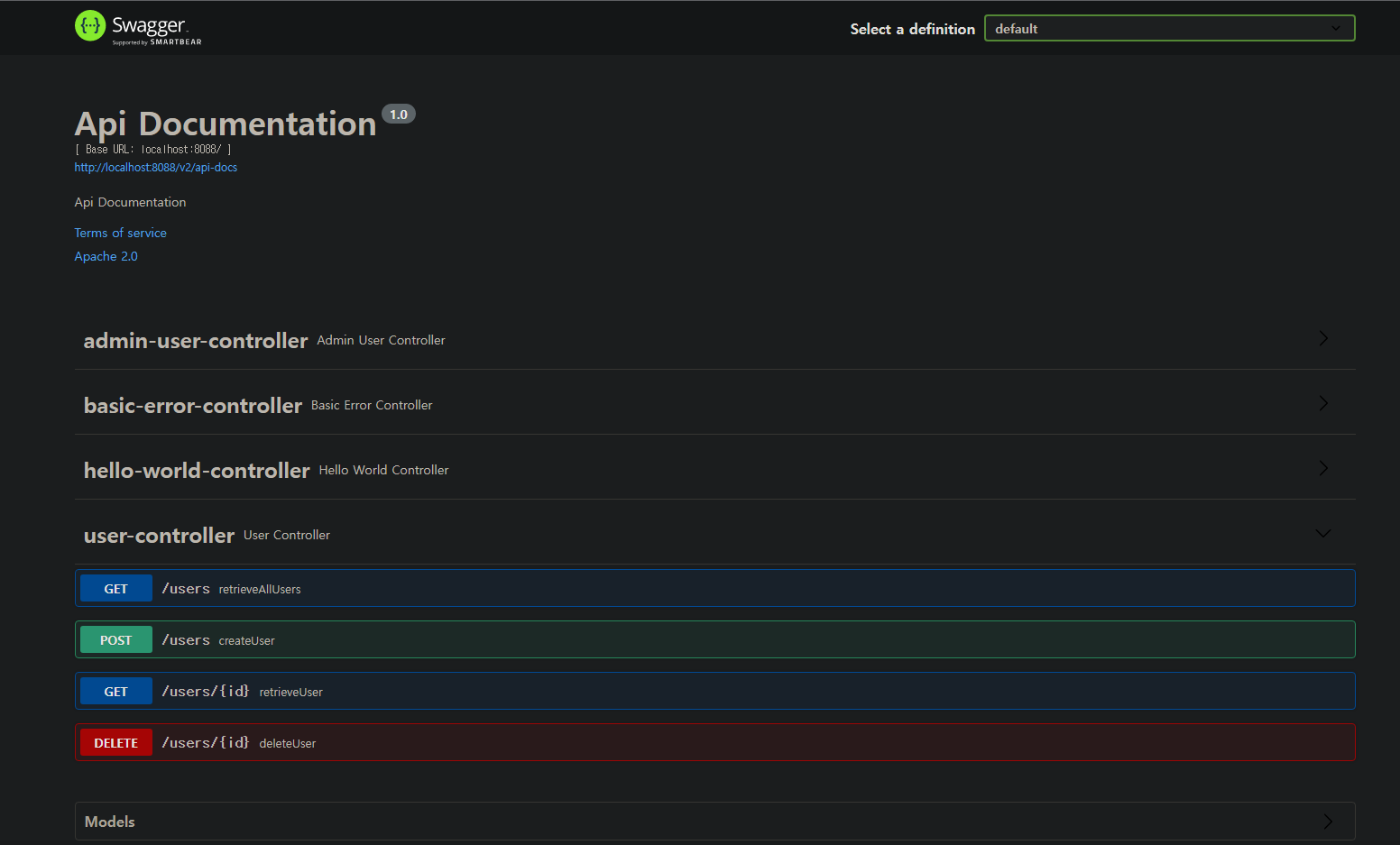 Swagger가 만들어준 api 리스트를 볼 수 있다.