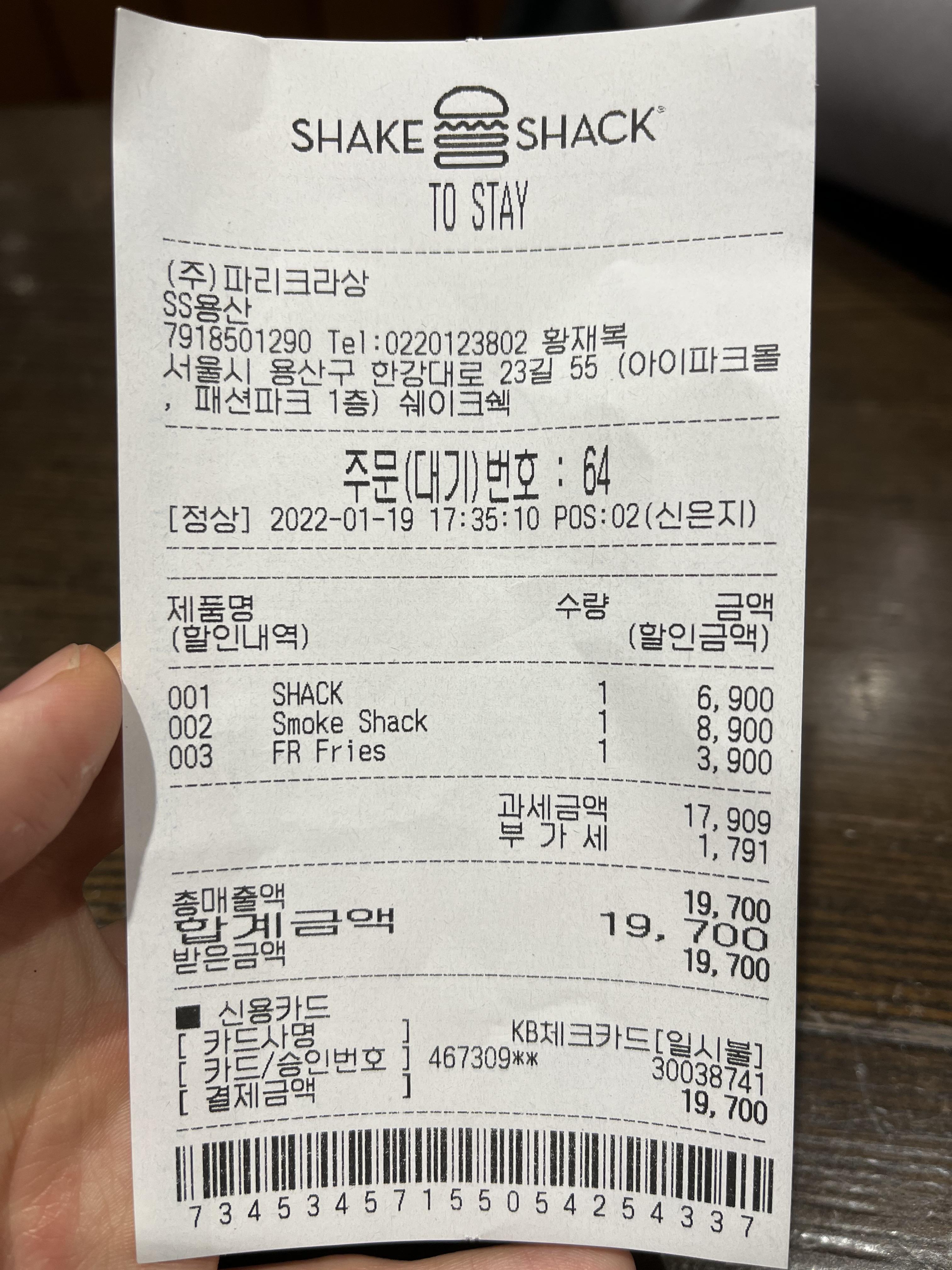 이제 사진의 아래가 기본 쉑버거, 위가 스모크 쉑버거인데 맛은 좋다. 근데 가성비 라고는 생각되지않는 가격이긴 하다 ㅋㅋ