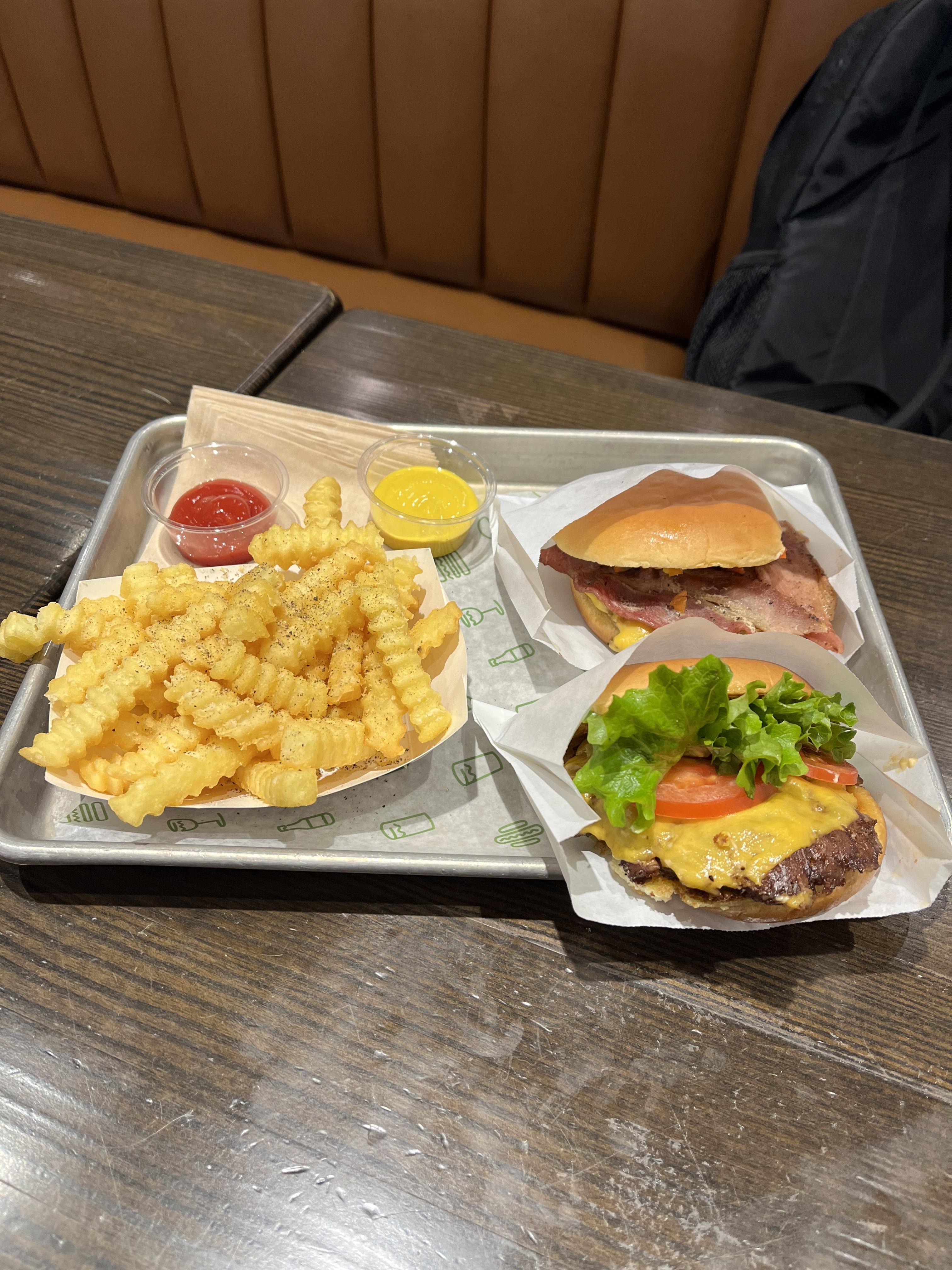 스모크 쉑버거가 베이컨도 짭잘하고 더 맛있는 듯. 그리고 감자튀김이 약간 내스타일이다.