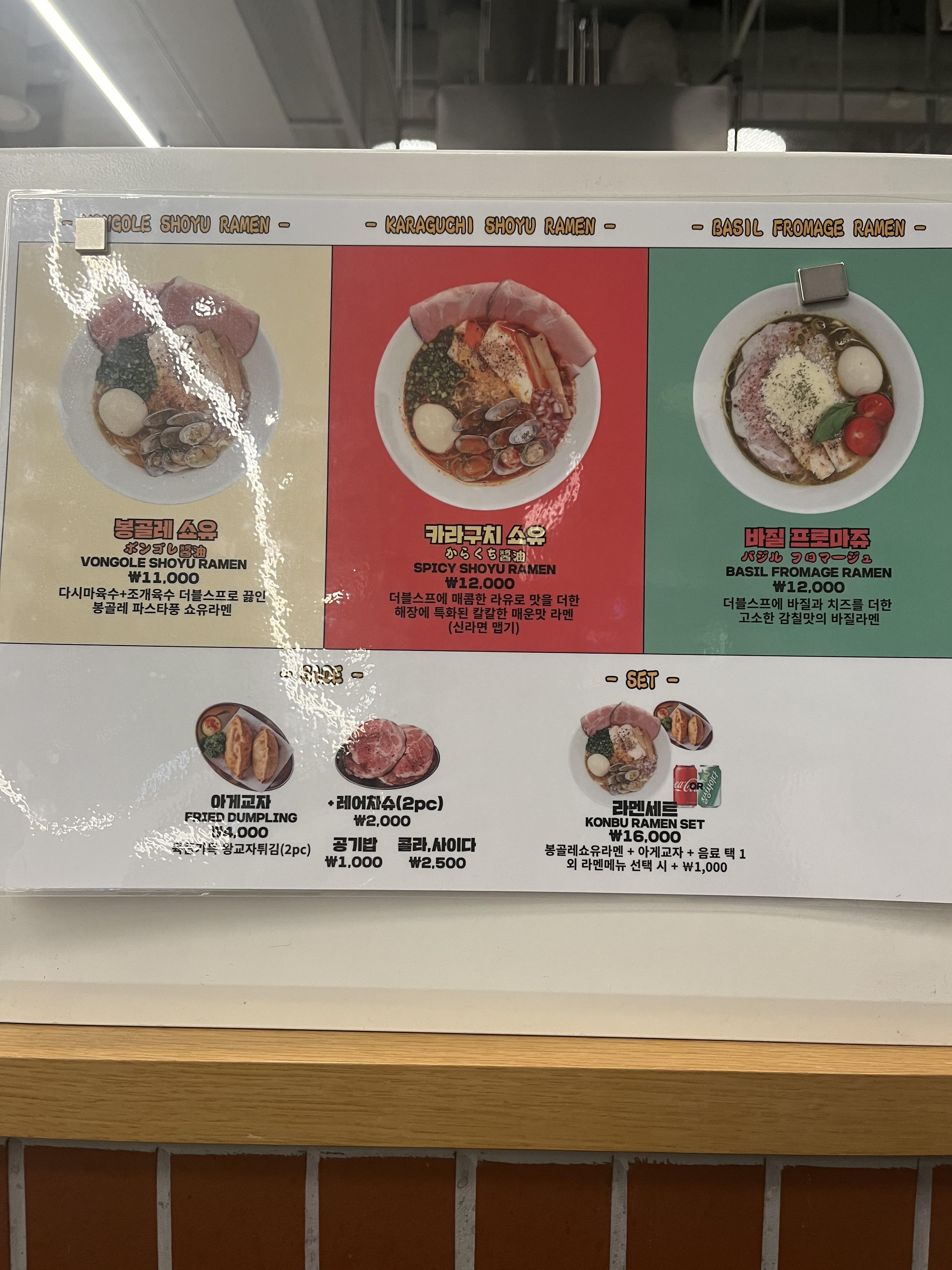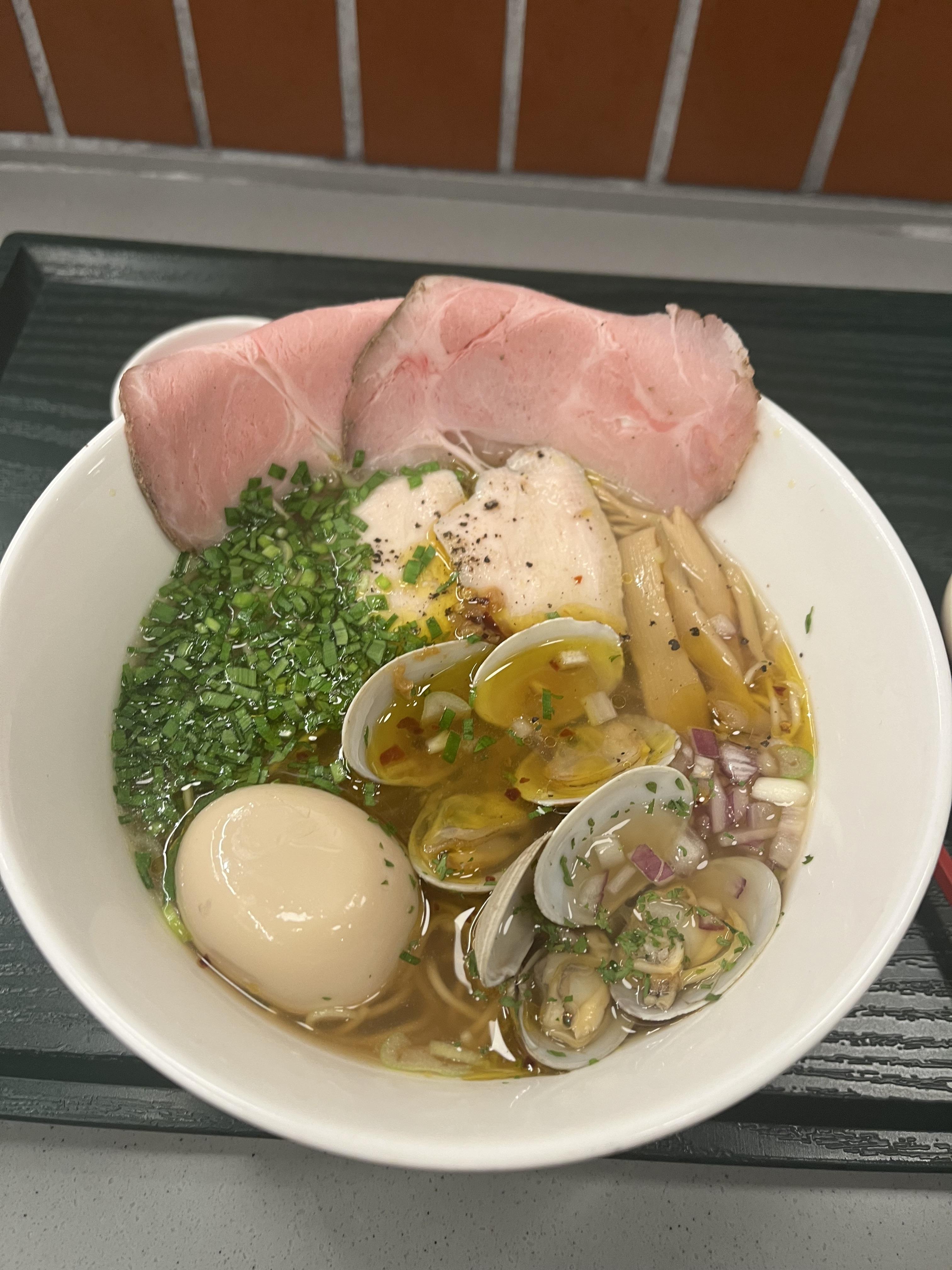 저녁은 콘부 라는 라면 가게에서 봉골레 쇼유를 먹었다.