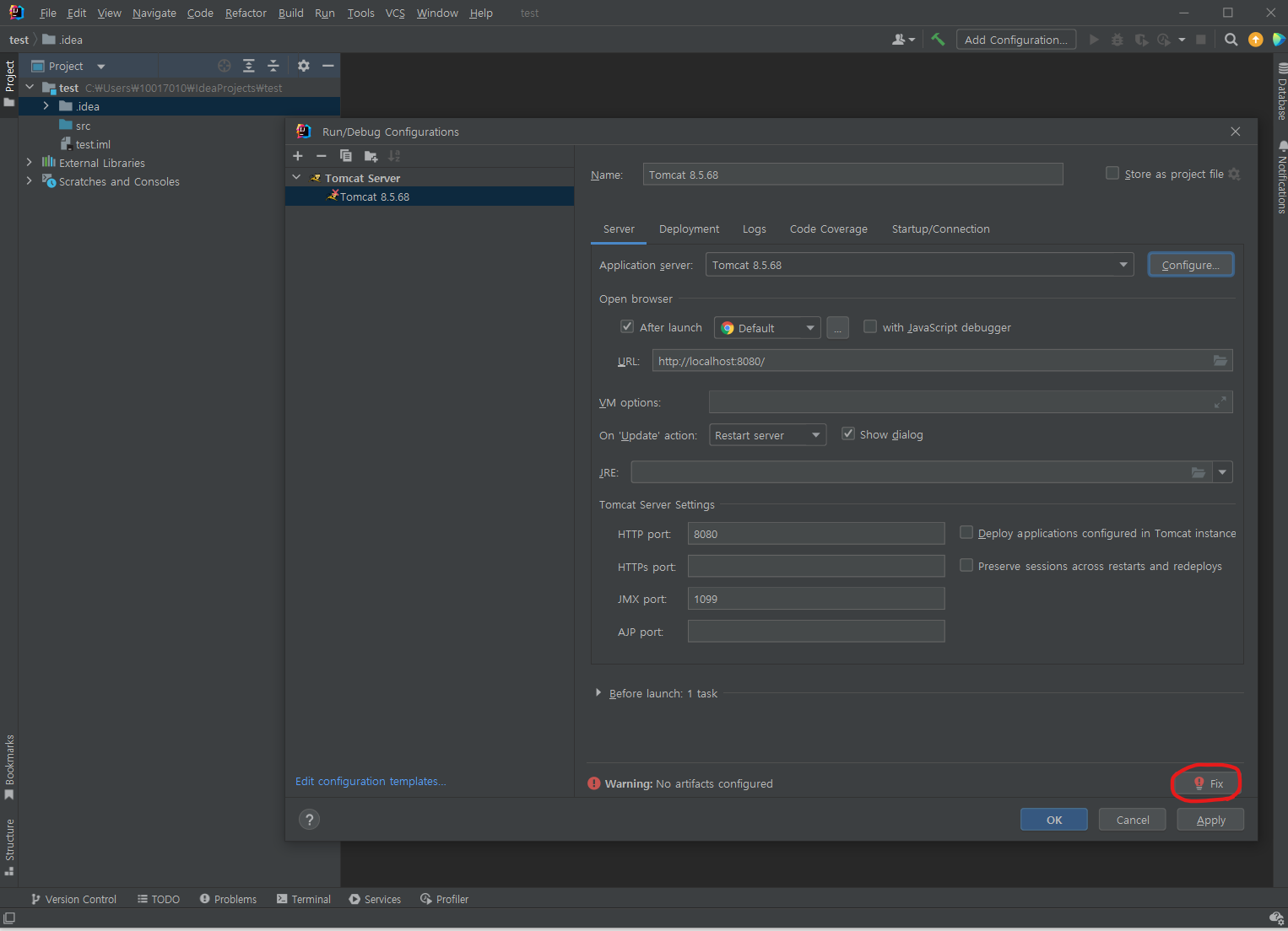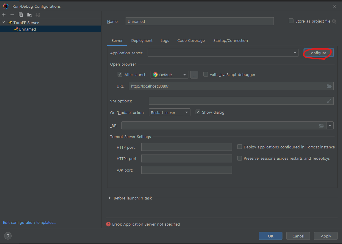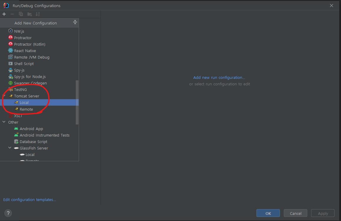 Tomcat Server Local로 선택