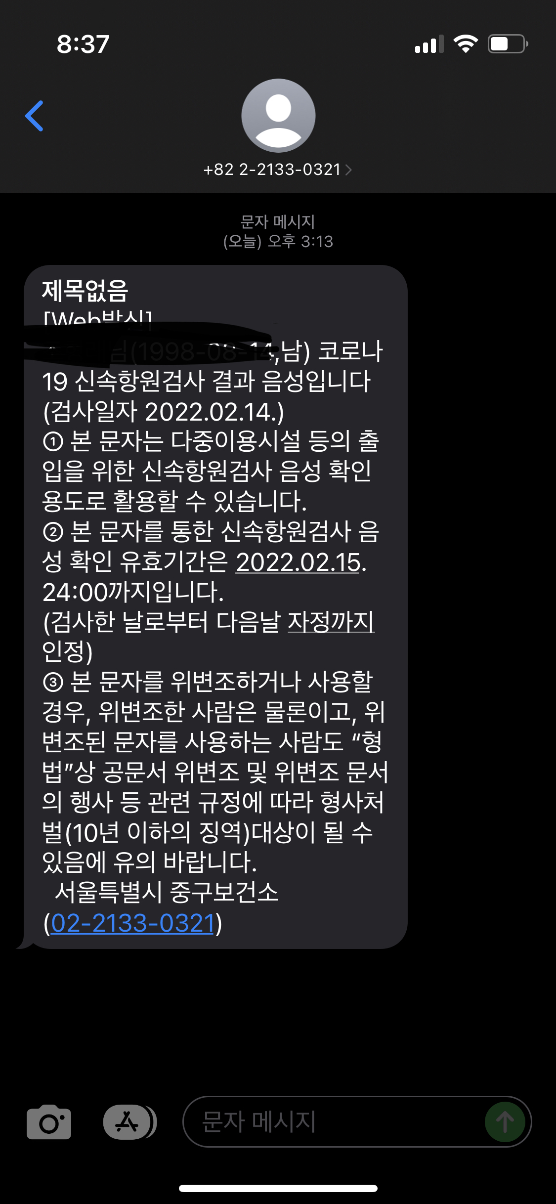 그래서 오늘 눈뜨자마자 집근처 선별진료소에서 pcr 검사를 받았다.