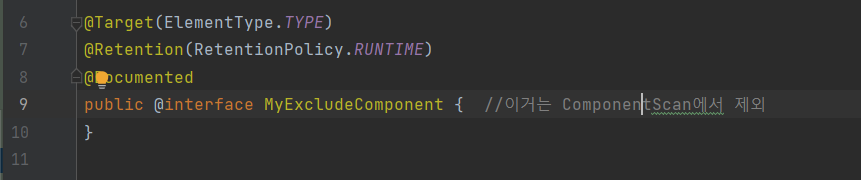 참고: @Component 면 충분하기 때문에, includeFilters 를 사용할 일은 거의 없다.