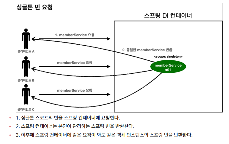 요청시마다 같은 인스턴스 객체가 반환된다.