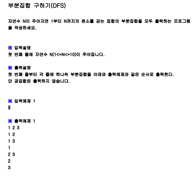 배열의 값이 1인 것의 인덱스만 출력하면 부분집합이 된다.