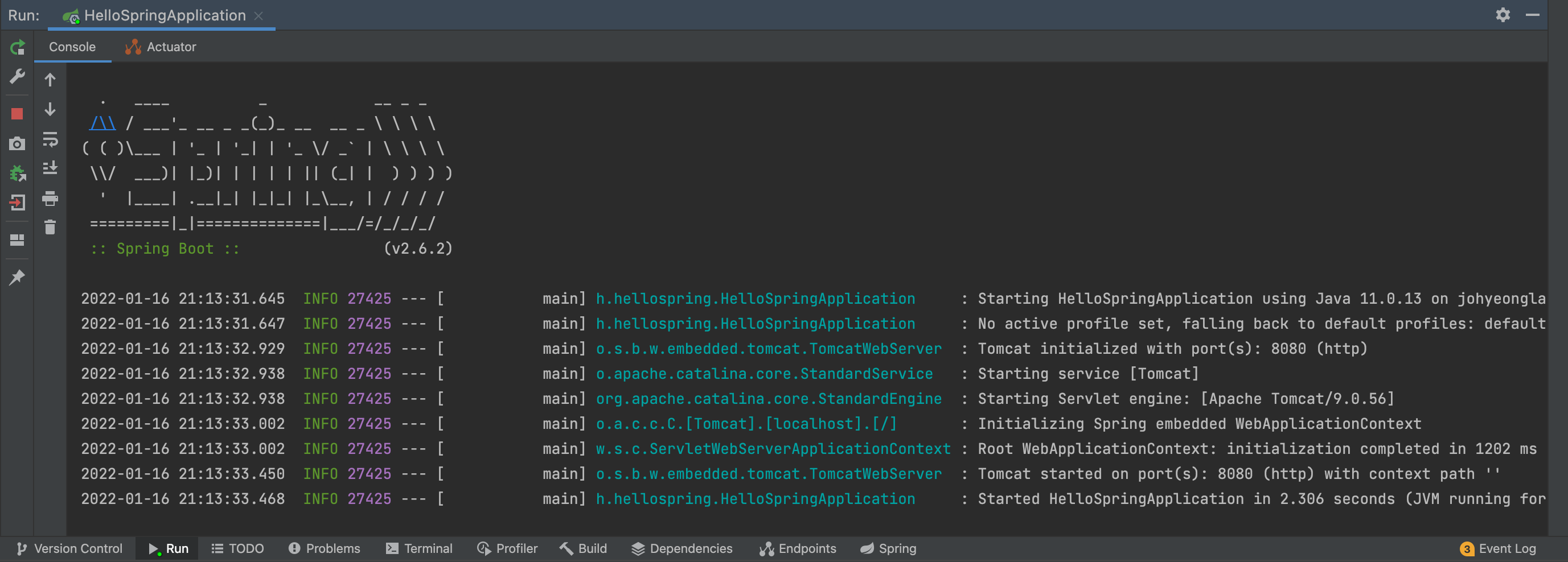 main을 실행하여 아래의 화면이 뜨면 정상적으로 프로젝트가 생성된것을 알 수 있다.